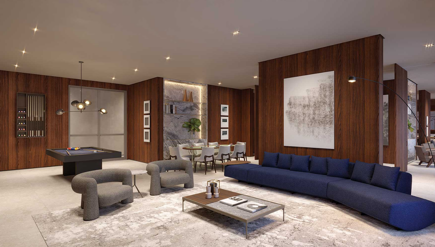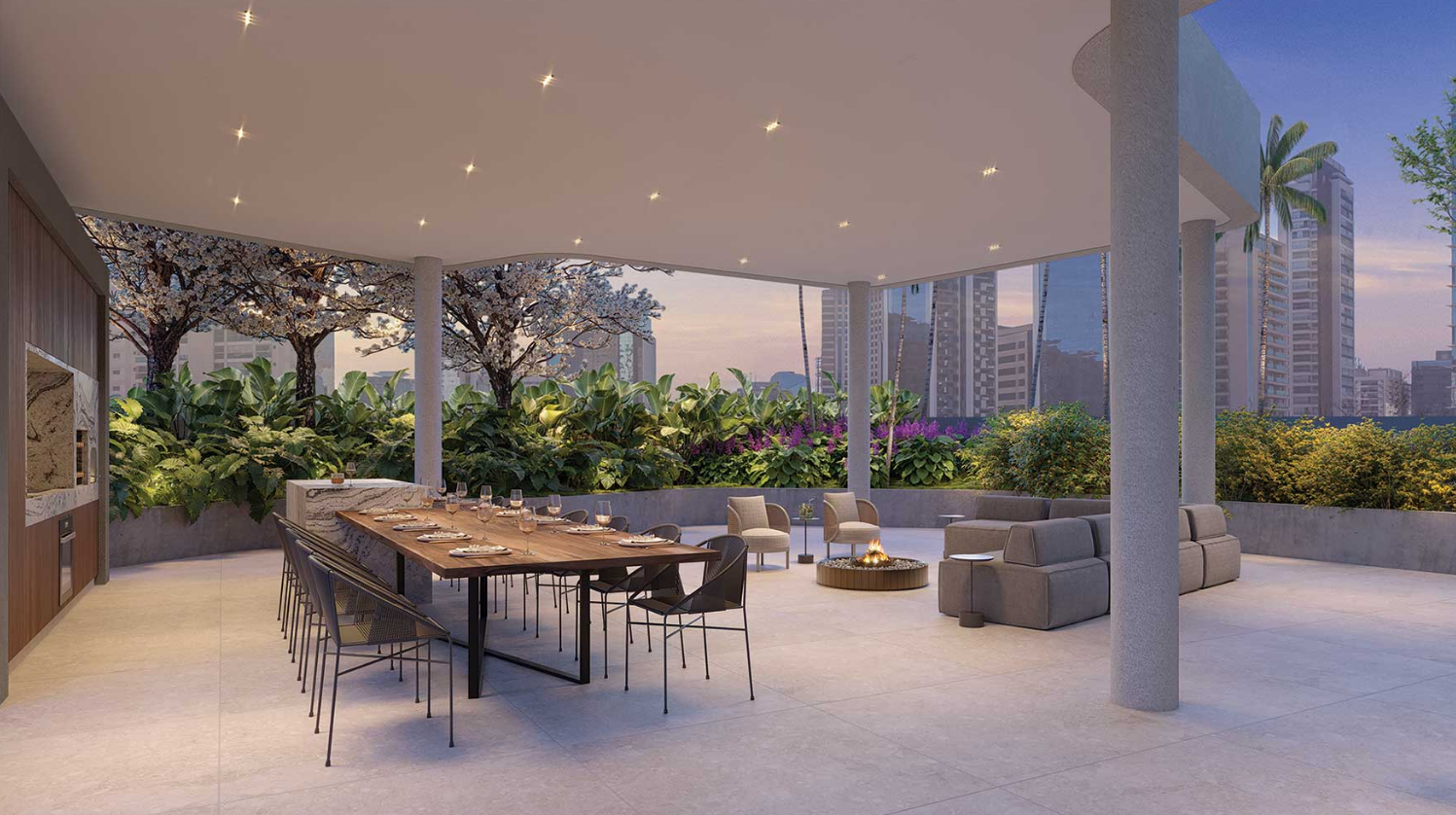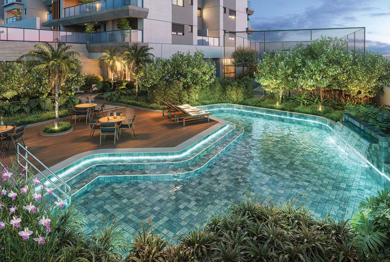 A proposta do empreendimento parte de um conceito residencial que busca equilibrar natureza, design e vida urbana. A implantação do condomínio prioriza a presença de áreas verdes e espaços de permanência integrados ao conjunto arquitetônico, criando ambientes agradáveis e acolhedores que contrastam com o ritmo intenso da cidade. Dessa forma, o projeto pretende oferecer um estilo de vida que alia conforto, privacidade e qualidade de vida.